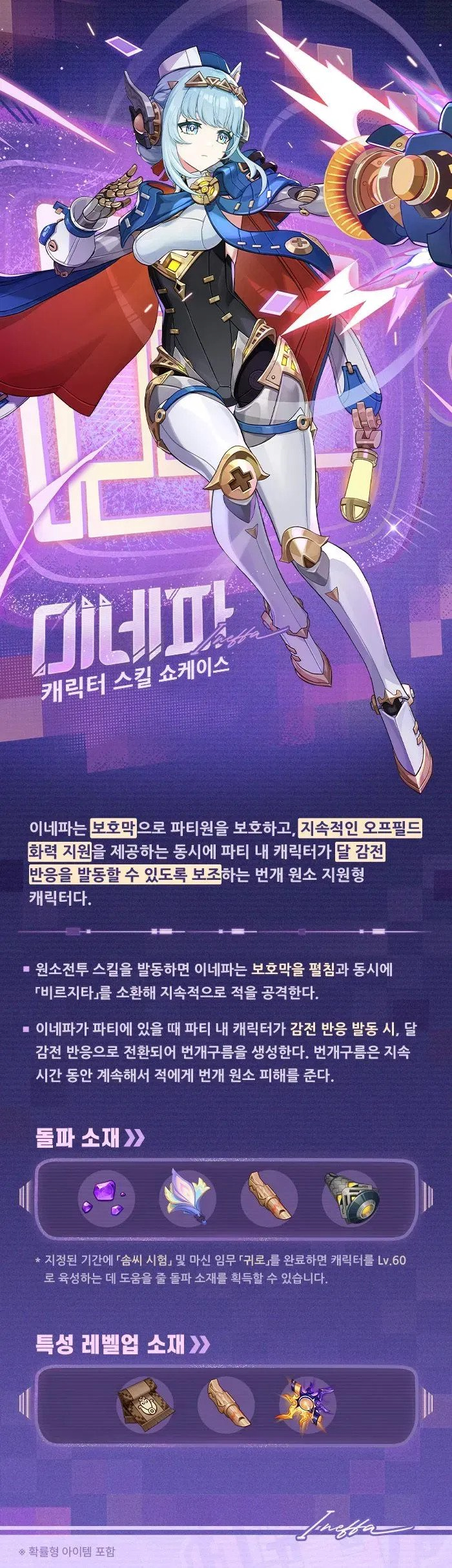 7월 29일 오후 1시 30분 경 원신 공식 유튜브 채널에서 원신 5.8버전에서 픽업 예정으로 밝혀진 원신 캐릭터 이네파의 캐릭터 영상 트레일러가 공개되었습니다.